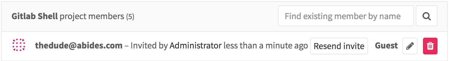 Once done, hit Add users to project and watch that there is a new member with the e-mail address we used above. From there on, you can resend the invitation, change their access level or even delete them.